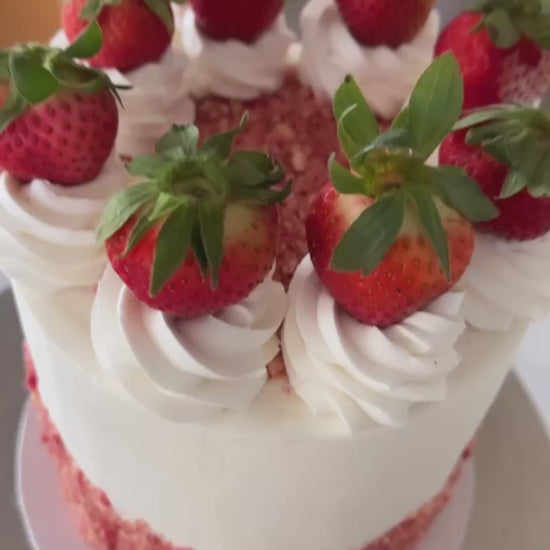 My Strawberry Crunch Delight Cake is made in a kitchen that processes wheat, dairy, eggs, soy, and nuts. While I take precautions to avoid cross-contamination, I cannot guarantee that this product is free from trace amounts of these allergens. If you have severe allergies, please consider this before placing your order.